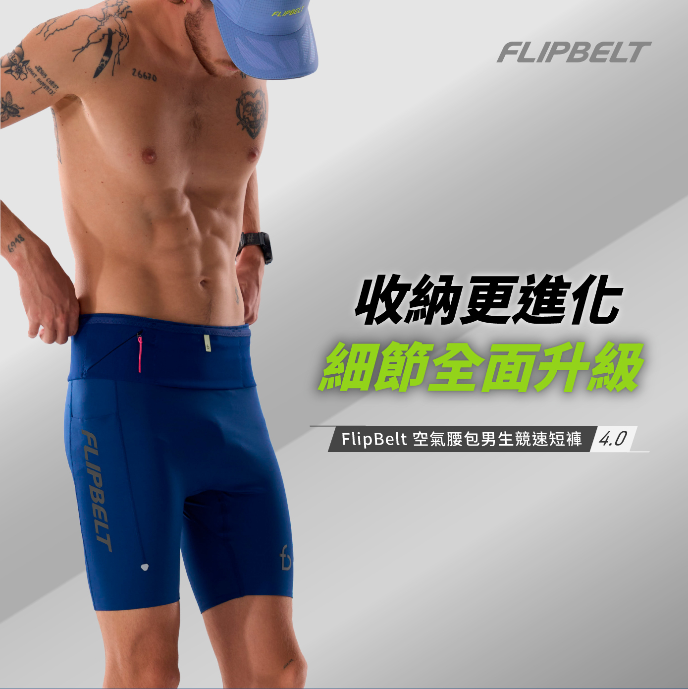 延續 FlipBelt 強大收納腰包設計,將機能短褲與收納系統完美整合,讓你專注每一步,不再被裝備干擾。