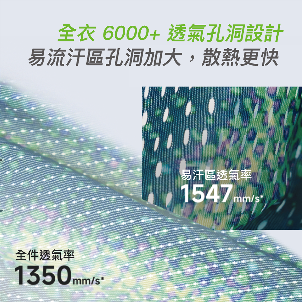 ▪︎ 全衣6000+透氣孔風洞設計|快速散熱不悶熱