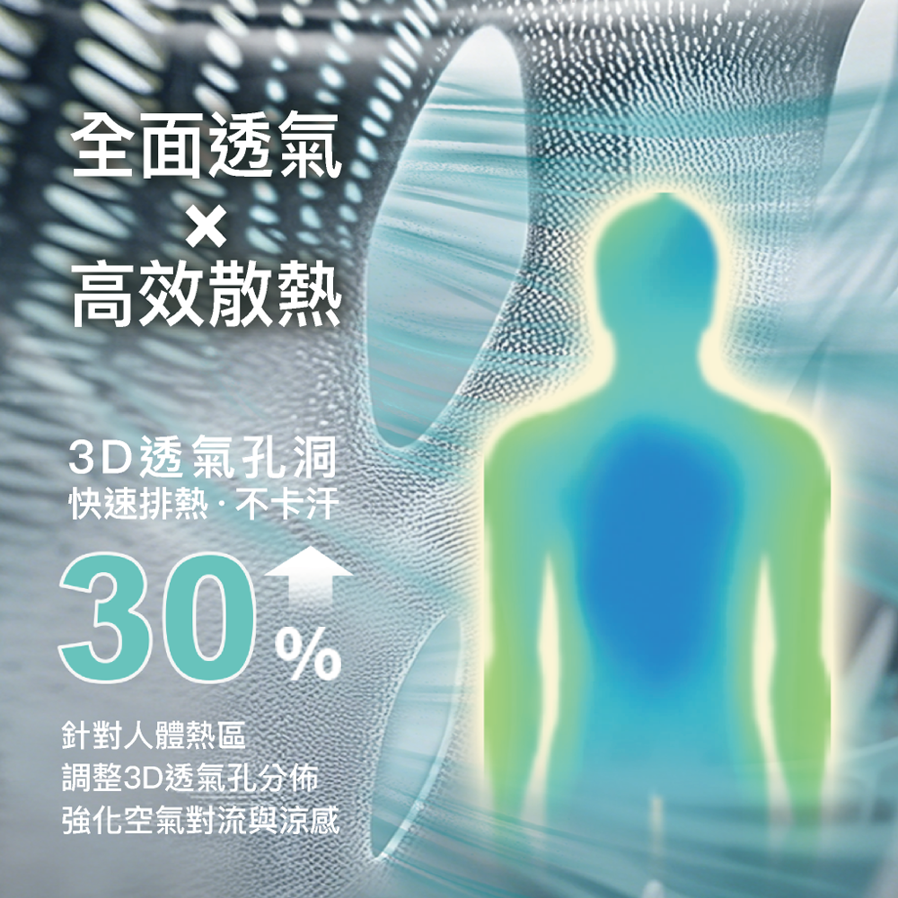 ▪︎ 全衣6000+透氣孔風洞設計|快速散熱不悶熱