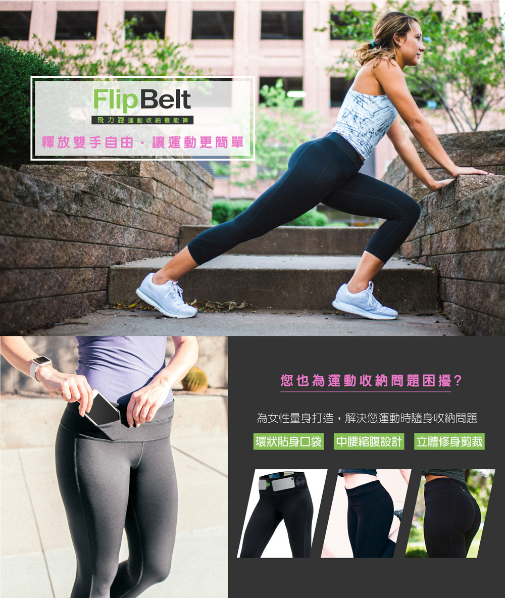 FlipBelt 飛力跑運動收納機能褲獨特環狀口袋設計